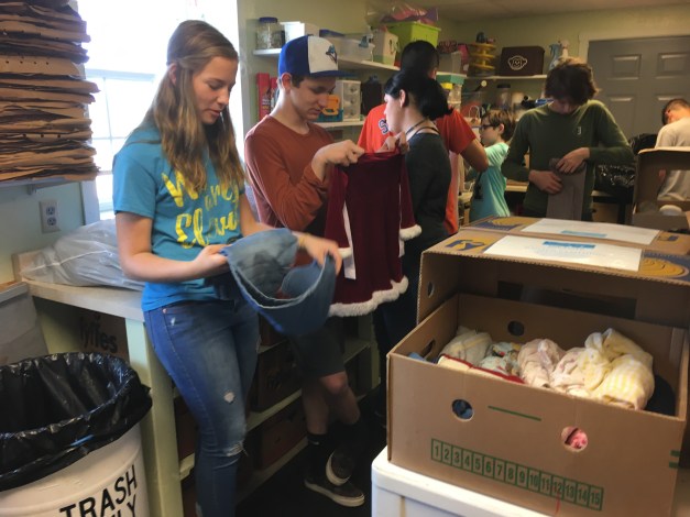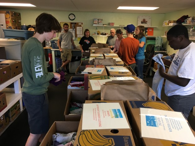 The students spent the remainder of the afternoon organizing and packing clothes into banana boxes: