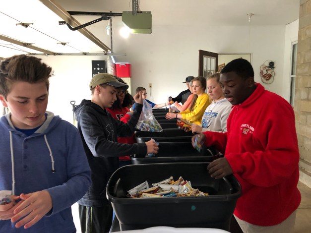 After dinner we went to our last service project called “Feed the Vern”. Feed the Vern is a non-profit that gives out food bags to elementary school kids on Fridays at schools so that they will have food over the weekend. These kids get meals throughout the week at school, but don’t have food for the weekends. This ministry helps make it possible for kids to have food all weekend as well. Our group packed over 400 bags which is enough for the rest of the school year.