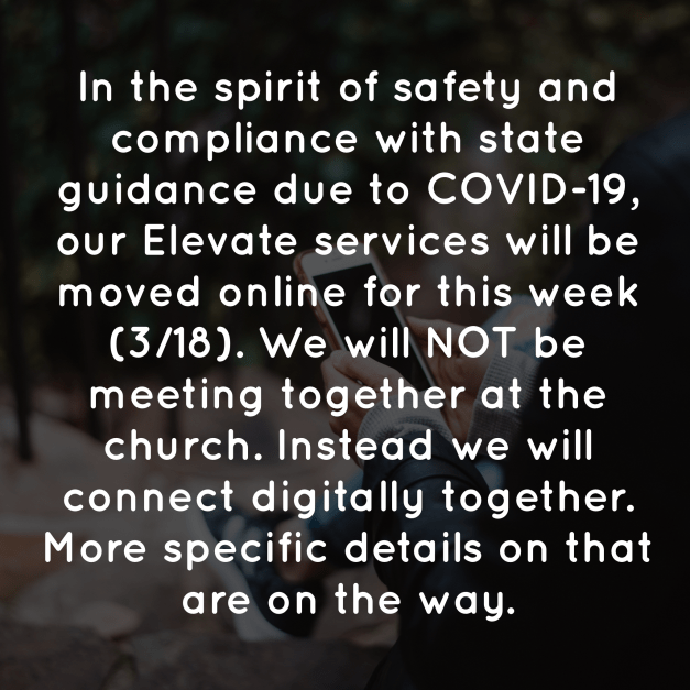 Elevate is ONLINE this week (3/18)! Posted by lncelevate on March 17, 2020 Posted in: Uncategorized. Leave a comment Share this: Share on X (Opens in new window) X Share on Facebook (Opens in new window) Facebook Like Loading... Related Posts navigation ← Winter Retreat 2020 Info on Ways to Connect with Elevate Online this week (3/18) →