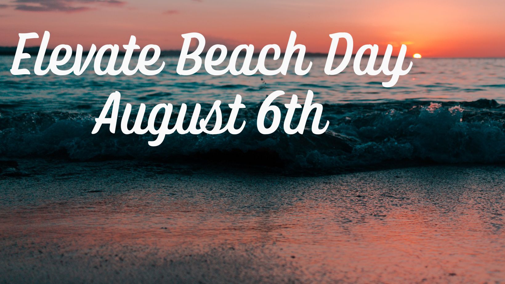 This weekend is our Elevate Beach Day. August 6th, we will meet at the Church at 9:45 AM and leave the Church to head to the Beach at 10:00 AM.