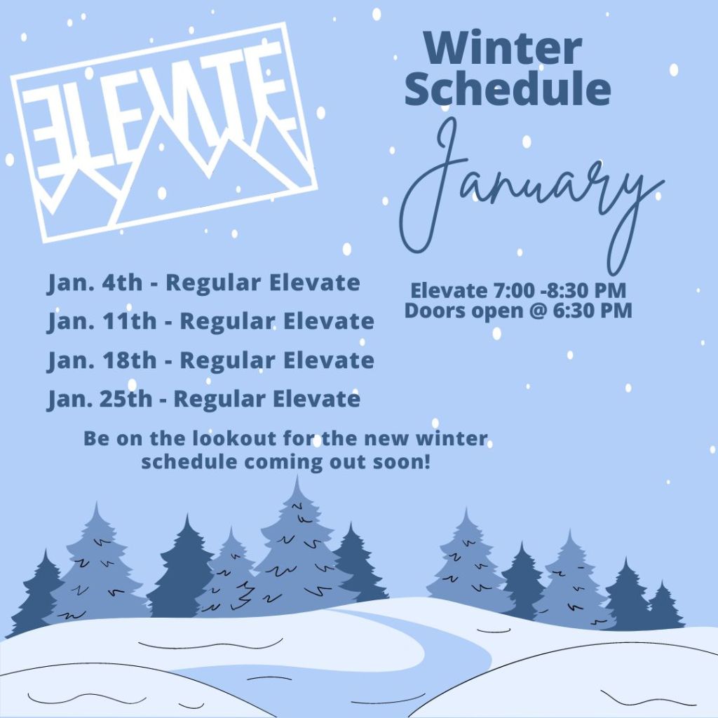 Here is what we have going on this January. We will be getting out February and March Schedule soon. Be on the look out for more information to come. Don’t forget you can print out your own copy in the download section on this page.