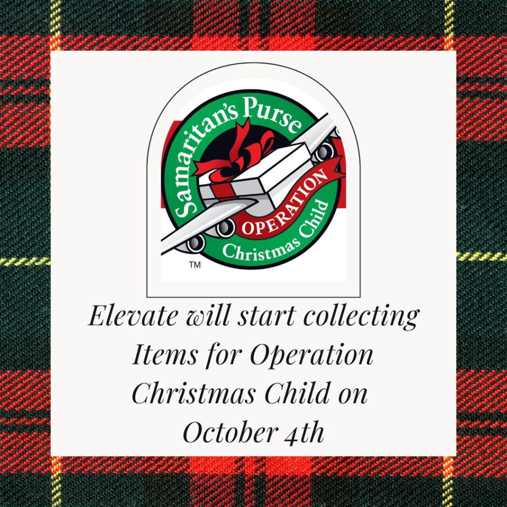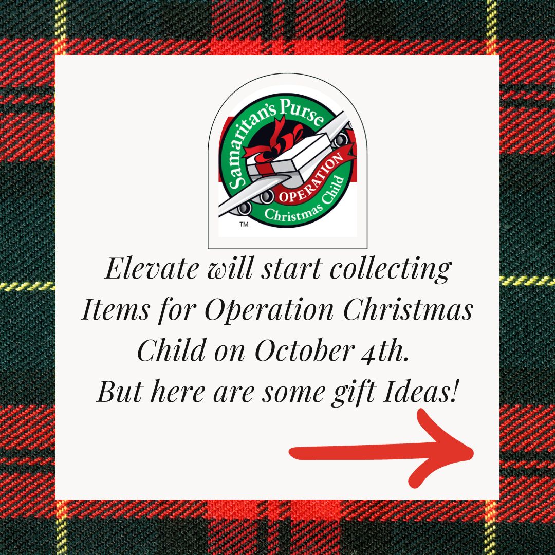 That means that we are starting to collect Operation Christmas Child supplies!! We are having a competition between the middle and high school students to see which Group can collect the most stuff for this project. The winning group will get their own Youth Event of their choosing. Attached is the approved packing list of Items. We will have designated bins for each group in the Elevate Room.