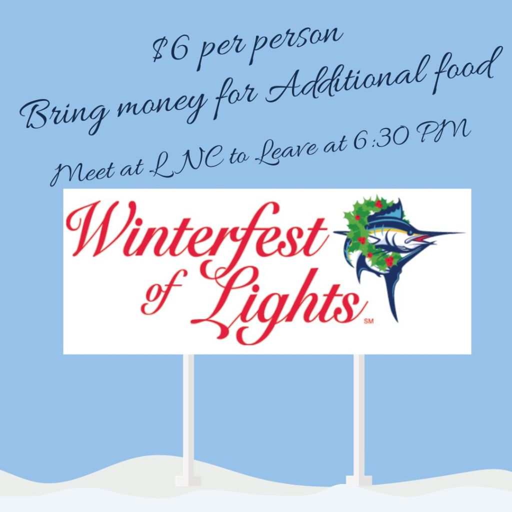 We will be meeting here at LNC at 6:30 PM, and the cost is $6 per person!!