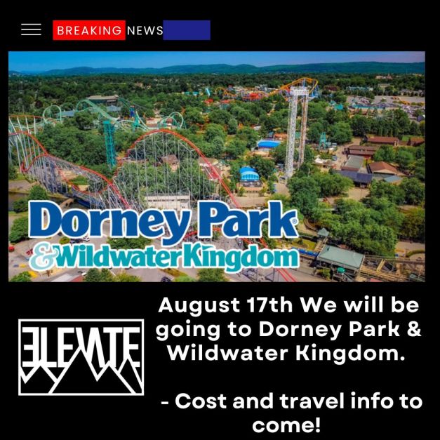 Elevate will be going to Dorney Park and Wildwater Kingdom to celebrate the End of the Summer!!