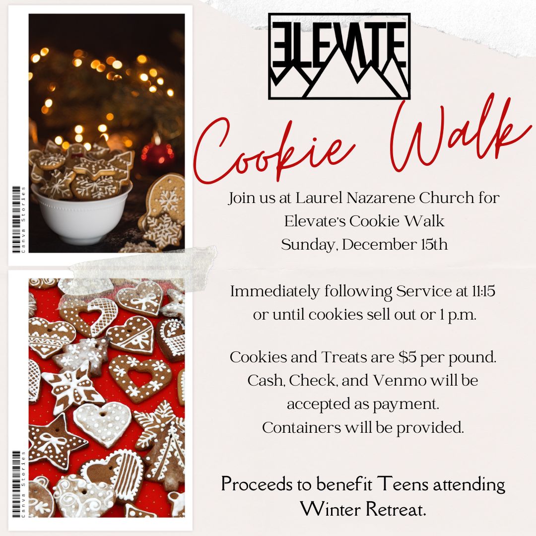 So invite your friends to come out December 15th following the Worship at 11:15 AM at the Laurel Nazarene Church to get some cookies, along with helping support our students that will be attending the Elevate Winter Retreat!