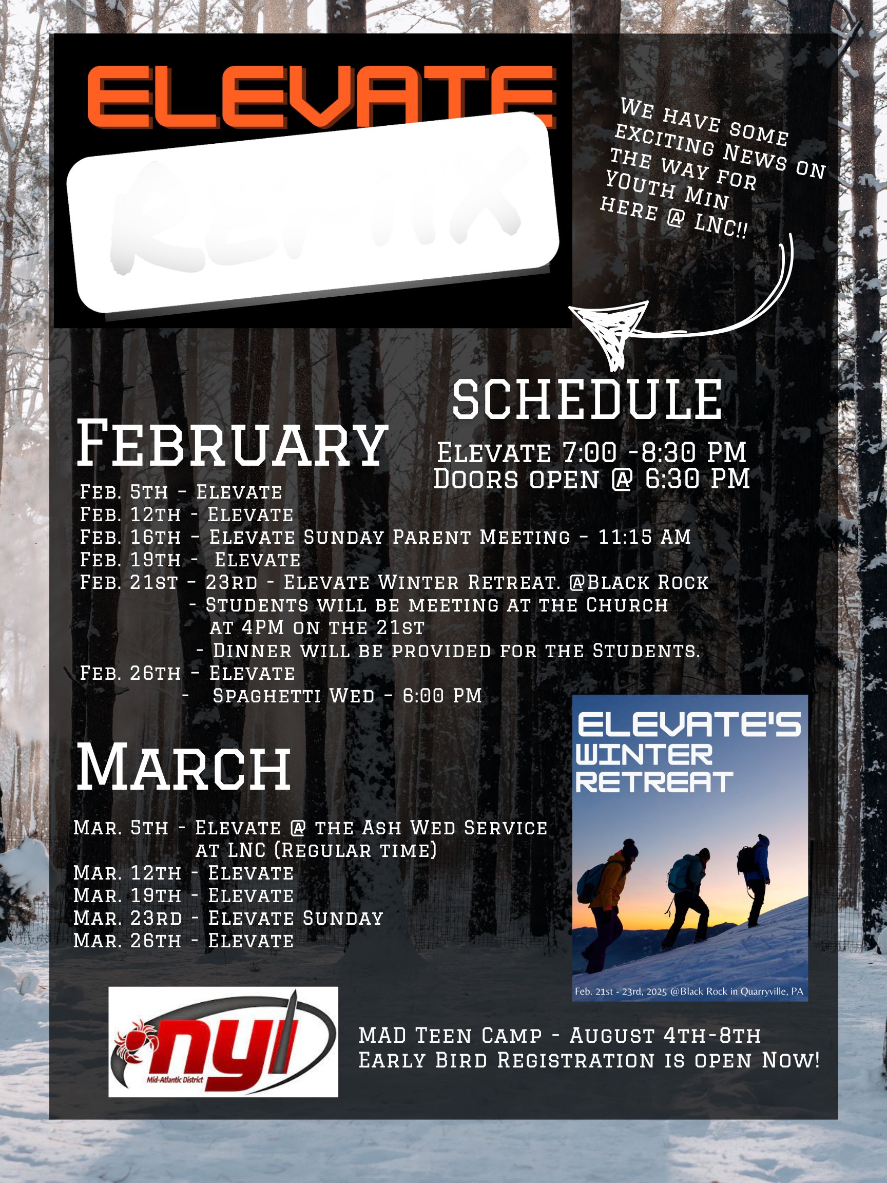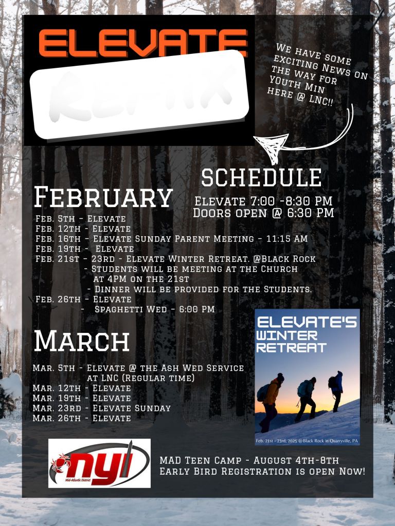 Hey Elevate families…here is the February – March calendar for Elevate. Please make sure to note of all the dates and important events that are coming up.