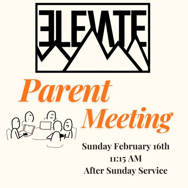 Hello Elevate Parents, here is a quick reminder that this next upcoming Sunday, Feb 16th will be the next Elevate Parent Meeting. Students and Parents, please make sure to attend this next meeting.