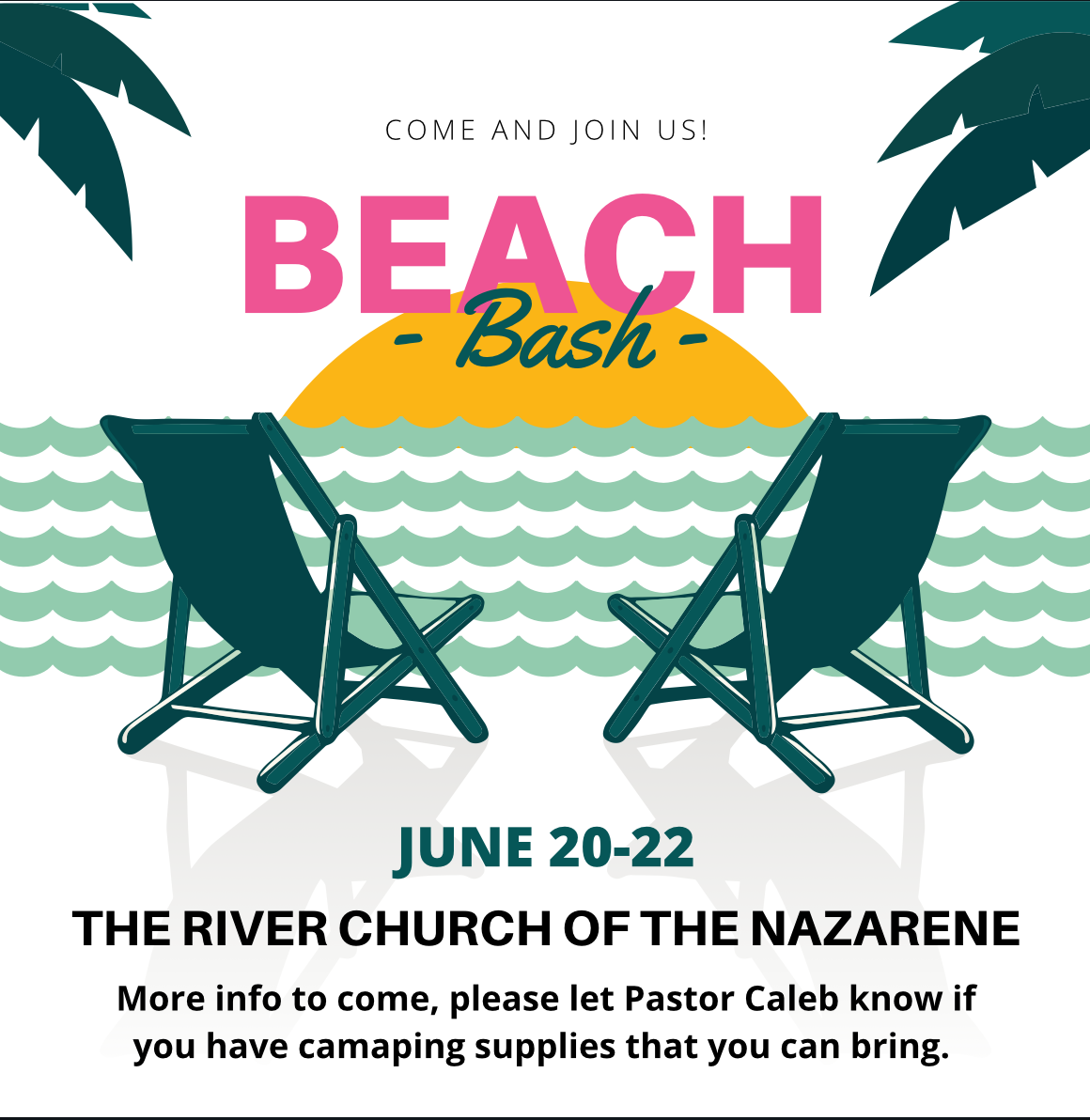Summer is right around the corner, and that means our first youth event of the summer is quickly approaching. We will be going to Beach Bash at The River Church of the Nazarene.