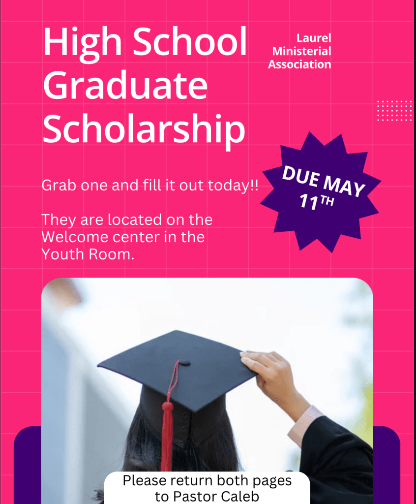 High School Graduate Scholarship 2025 Posted by lncelevate on April 23, 2025 Posted in: Uncategorized. Leave a comment Graduating seniors if you are an active participant in the youth ministry here at LNC you are eligible for this scholarship. Grab a printed out scholarship form in the Elevate room. Make sure to turn this into Pastor Caleb by May 11! Share this: Share on X (Opens in new window) X Share on Facebook (Opens in new window) Facebook Like Loading... Related Posts navigation ← Beach Bash 2025 Elevate is Happening Next Week!! →