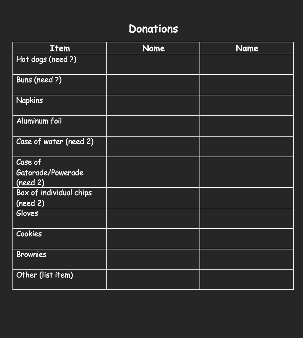 See below the flyer with all info and food recommendations to bring. Please sign up for an item by typing it in the comments below or texting P. Caleb directly.