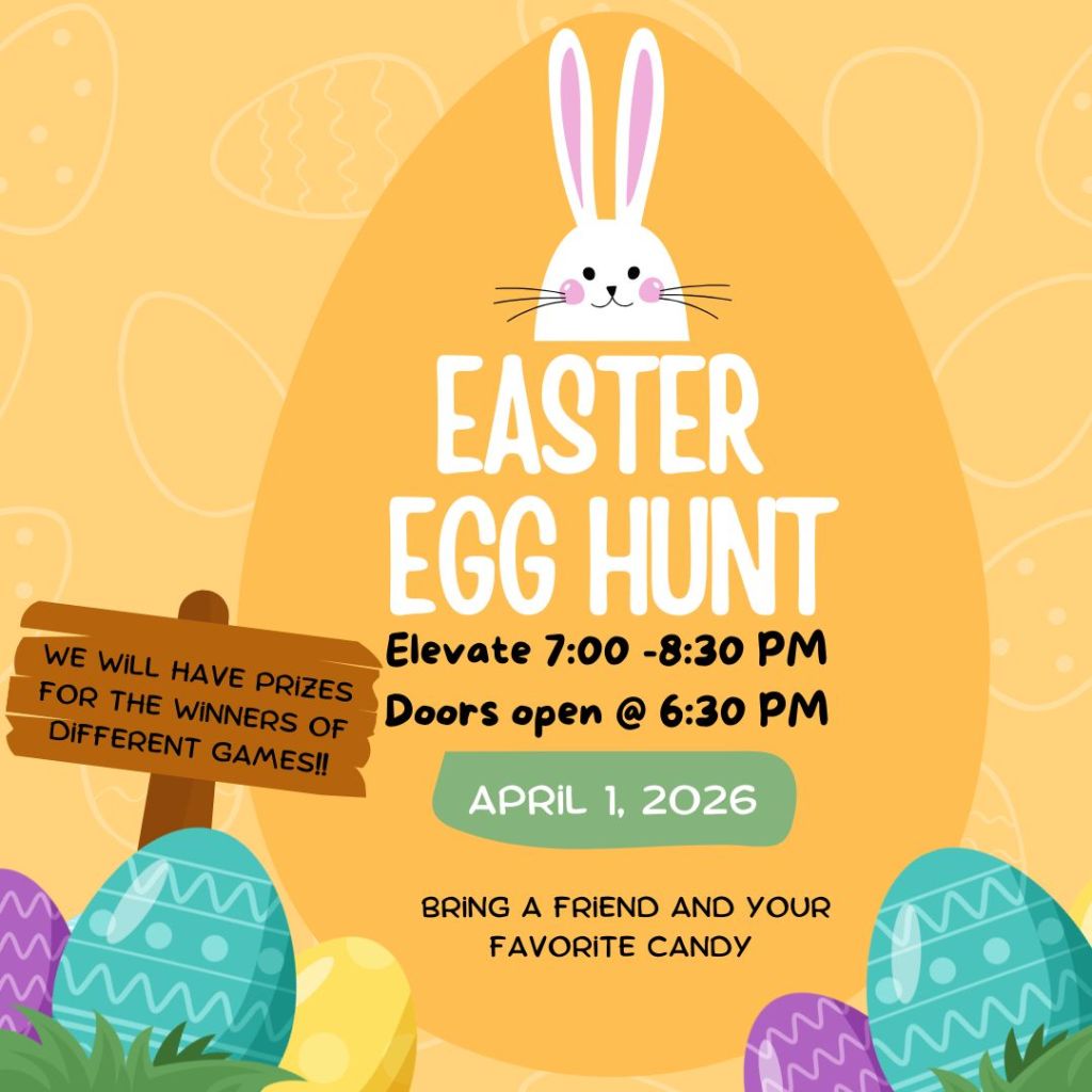 Next Week is our Easter Egg Hunt!! Posted by lncelevate on March 25, 2026 Posted in: Uncategorized. Leave a comment Bring a friend and your favorite candy! Share this: Share on X (Opens in new window) X Share on Facebook (Opens in new window) Facebook Like Loading... Related Posts navigation ← Elevate Remix 3/25/26
