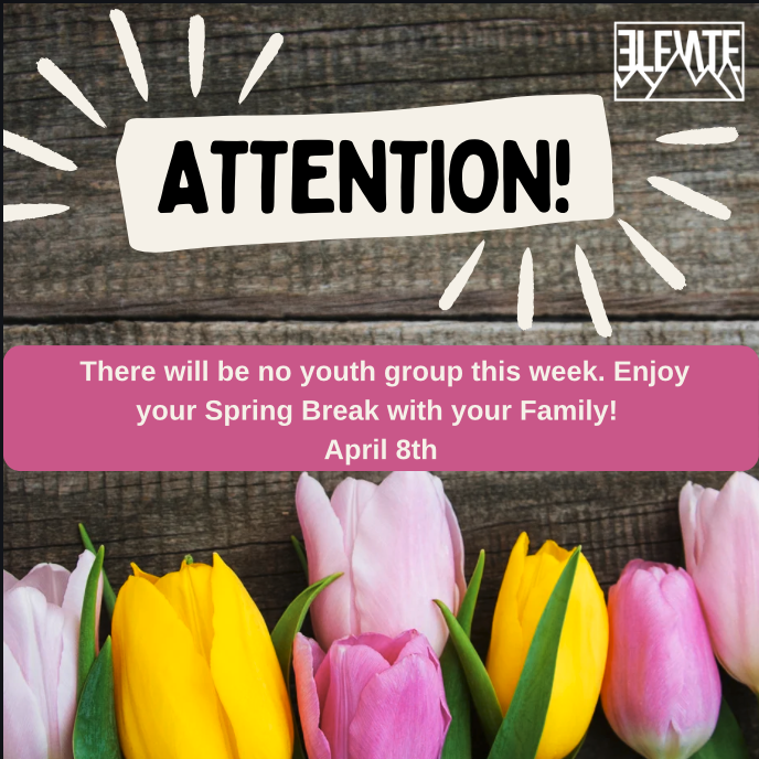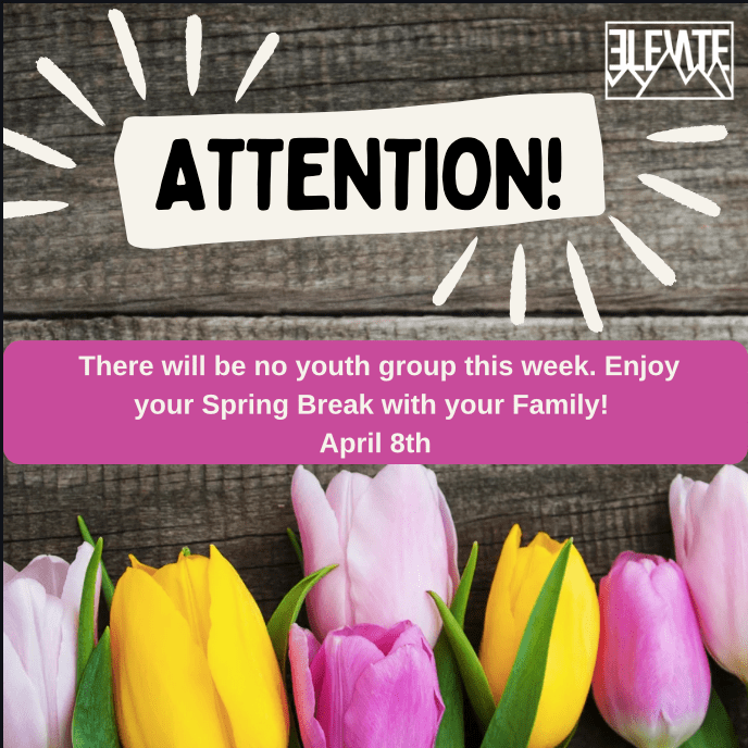 No Youth Group this week, see you next week! Posted by lncelevate on April 7, 2026 Posted in: Uncategorized. Leave a comment Students and Families, we hope that you are all enjoying this week of spring break. You are loved, and you are being prayed for this week!! HE HAS RISEN! Share this: Share on X (Opens in new window) X Share on Facebook (Opens in new window) Facebook Like Loading... Related Posts navigation ← Elevate Remix – 4/1/26 No Youth Group this week →