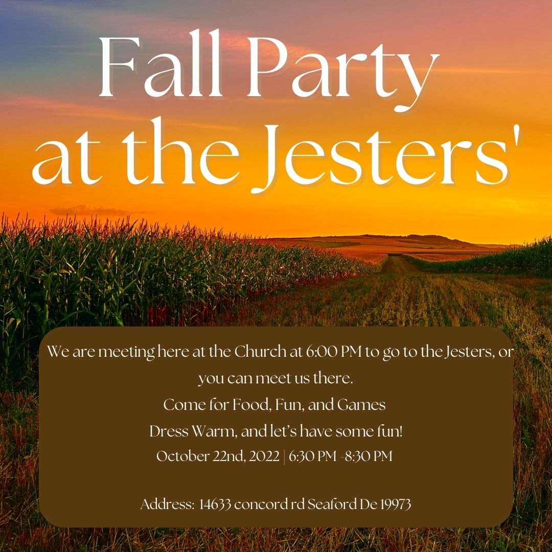 We will meet at the Church at 6:00 PM on October 22nd to go to the Jesters, or you can meet us there. Please let us know if you are planning on driving your selves there. If you are meeting us there, please ensure that you have a ride home because we may not have room in the van if you do not come with us.