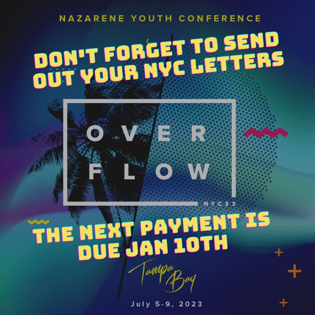 – Several updates for NYC 2023 for you as parents. These updates will include an up-to-date number for what your student has in their NYC account. The upcoming payments and registration deadline, as well as some more fundraising opportunities that we are having for your students.